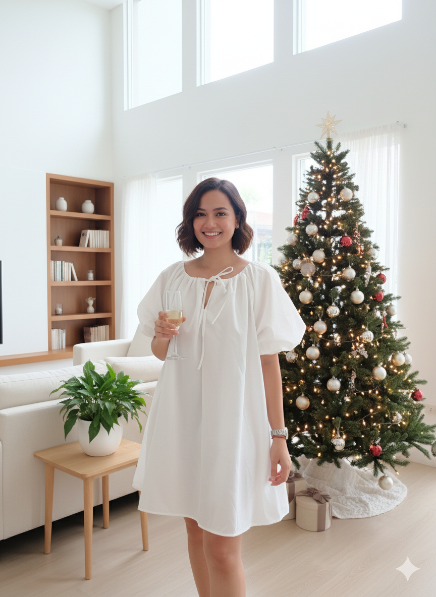 Breezy, effortless, and irresistibly chic ā this Balloon Babydoll Dress is your go-to piece for elevated casual days. Made for comfort and style, this dress is double-lined to ensure full coverage without compromising breathability. Designed in a flattering free size silhouette, its flowy cut and 24-inch width comfortably fit small to large frames, making it an inclusive wardrobe staple. The standout balloon sleeves and soft neckline tie detail add a romantic flair to its minimalist shape.