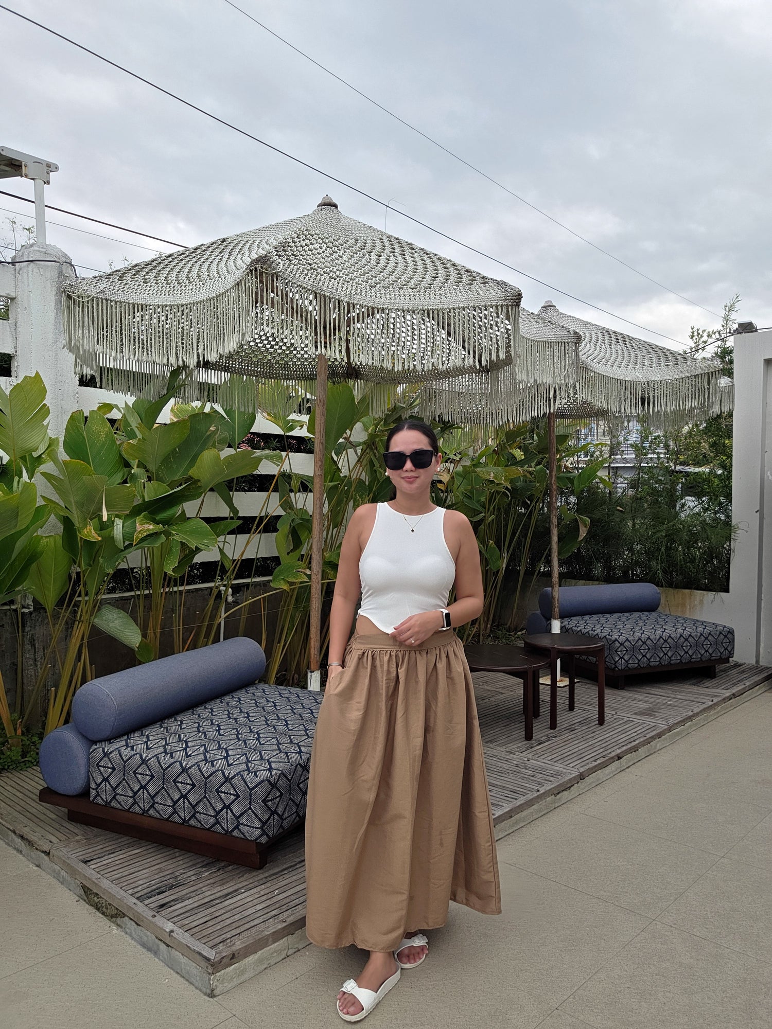 - Casual Chic: Pair with a fitted crop top (like the one pictured) and flat sandals for a relaxed, summery look.