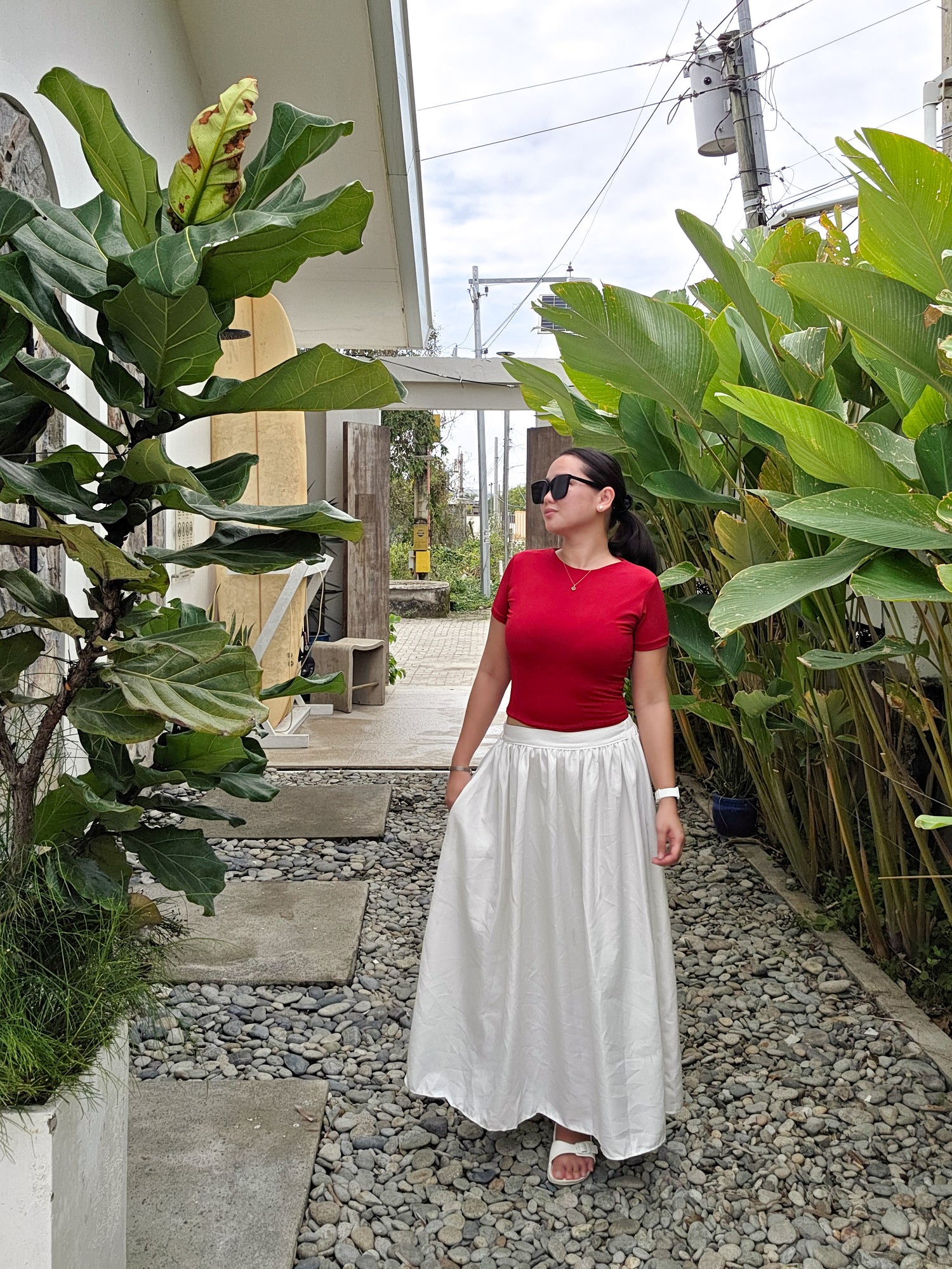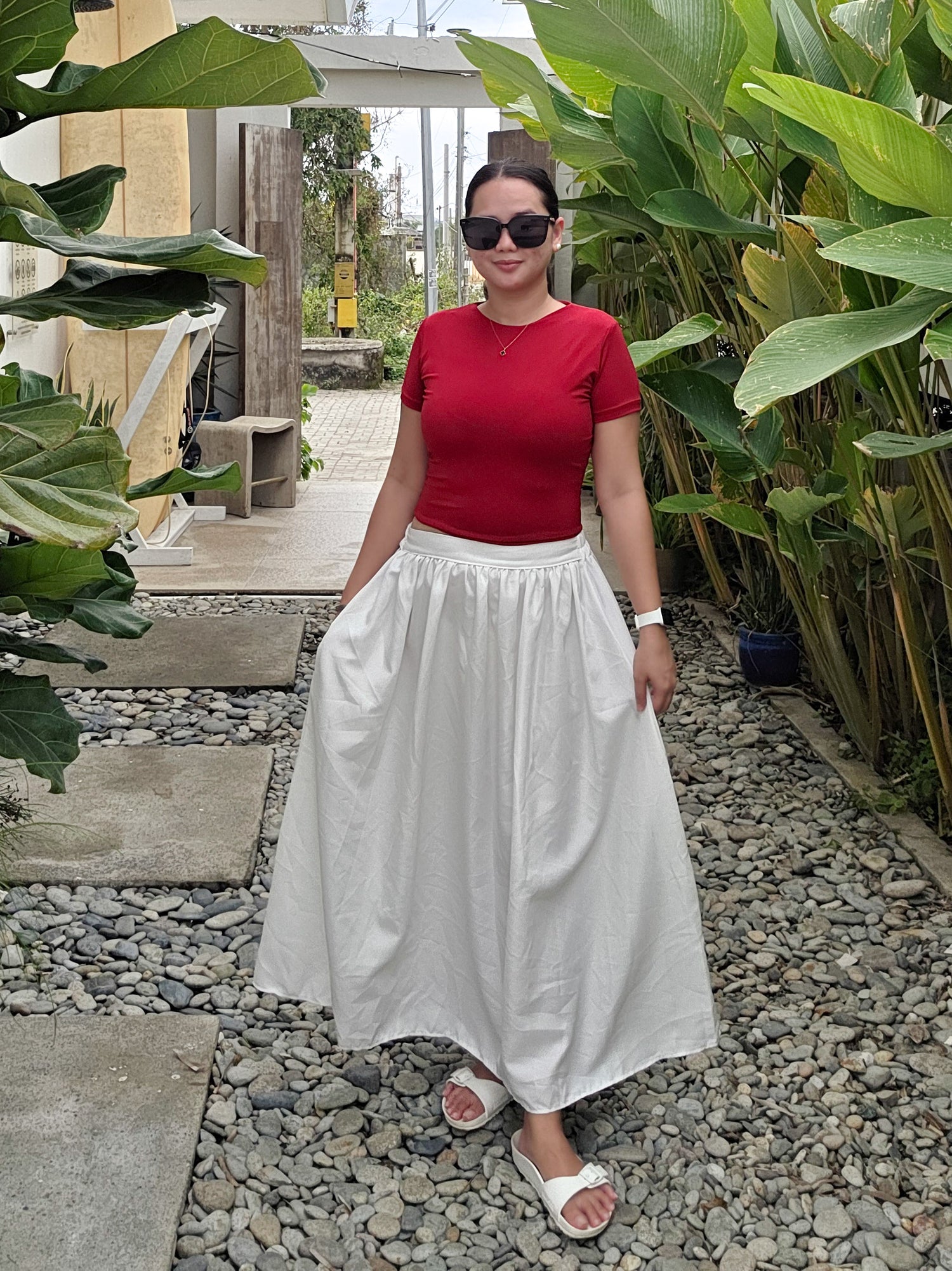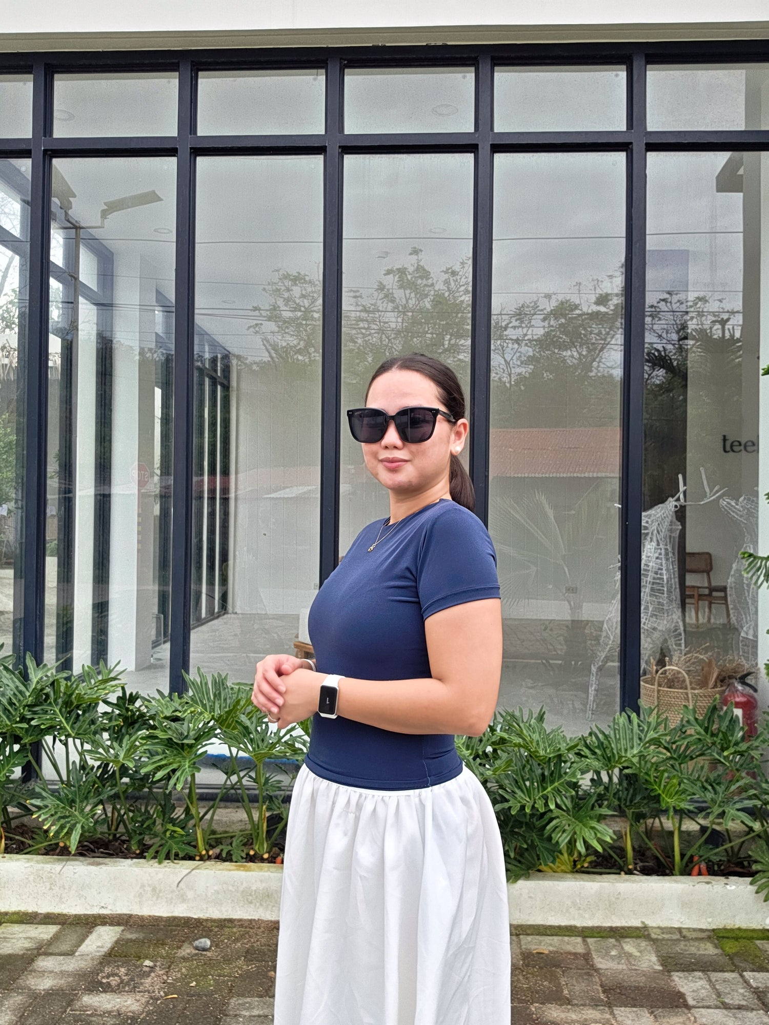 - Effortless Contrast: Pair with a flowy white midi skirt (as pictured) to balance the fitted silhouette. Add oversized sunnies for instant chic.
