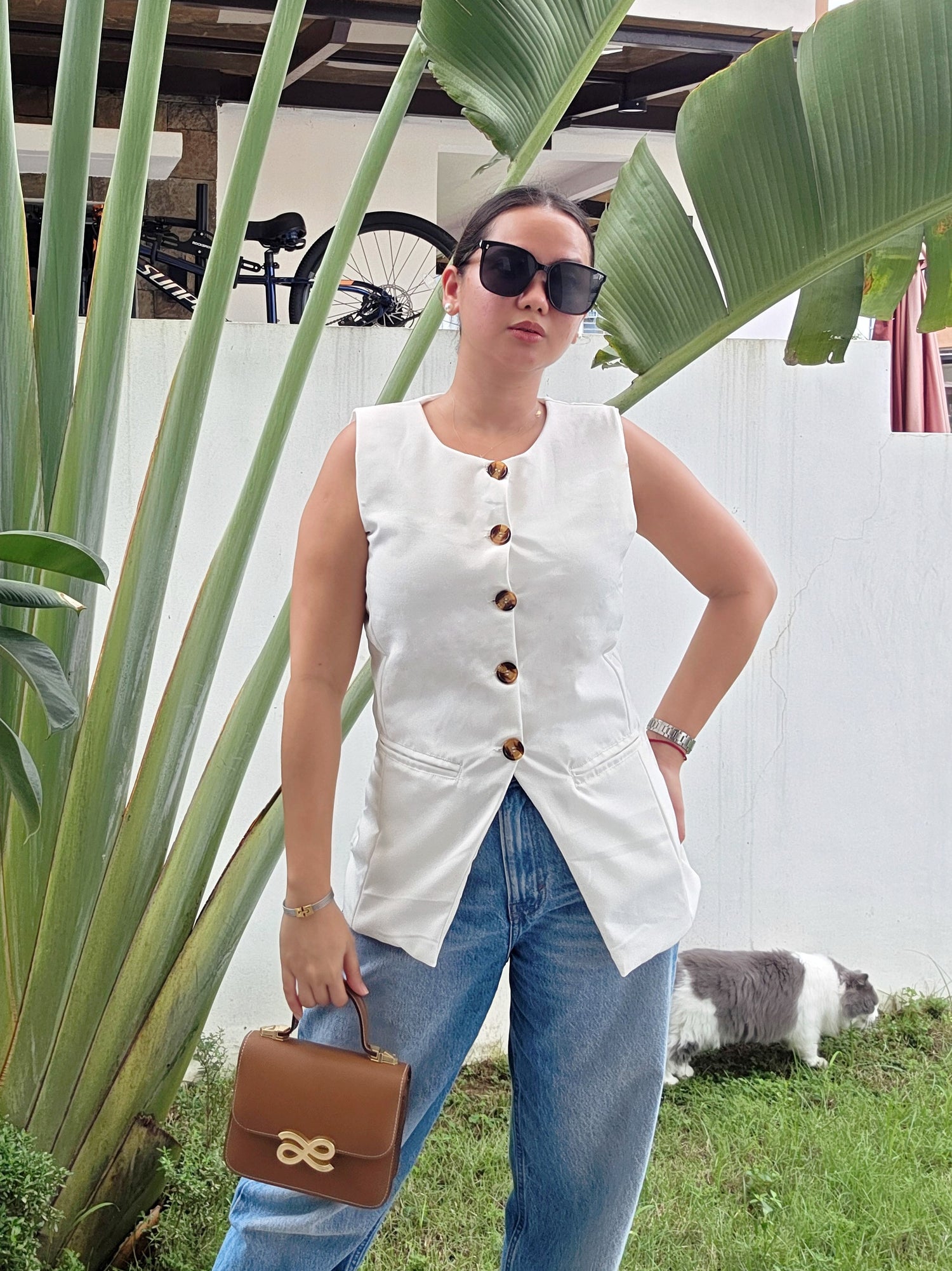 Office Ready: Layer it over a crisp white button-down shirt and tailored trousers. Add a pair of loafers or low-heeled pumps for a professional and modern office look.