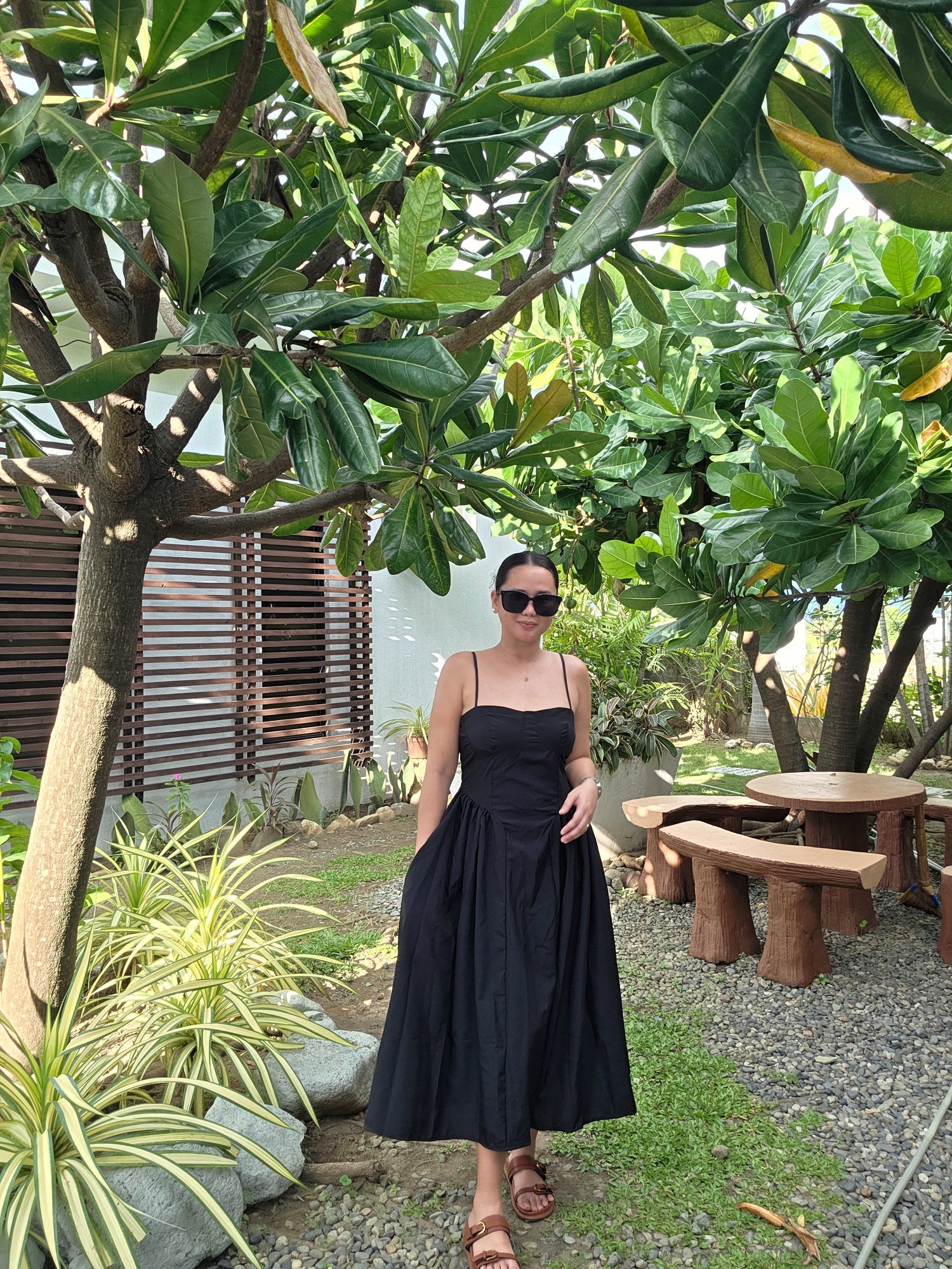 The full, flowing skirt adds graceful volume, creating a silhouette that’s both timeless and modern. Whether you're heading to a daytime gathering or an evening escape, this dress makes dressing up feel refreshingly uncomplicated.